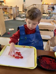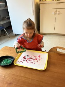 Our toddlers started off the week with a cookie-cutter paint craft, giving them a rich hands-on sensory learning experience. Through this activity, they practiced fine motor control by pressing and lifting the cutters, while also building bilateral coordination as they used both hands together. This open-ended work allowed the children to explore sensory input, experiment with cause and effect, and express themselves creatively in their own unique ways.