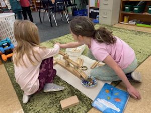 We added some extension work to our Simple Machine Unit with the help of Rube Goldberg. The students were offered a variety of materials to create an obstacle course using several simple machines. They first drew their course, wrote their hypothesis, gathered materials, built it and tried it out. Many were able to be successful the first time, while others realized they had to make some changes. This was great work for creativity, simple machine practice and teamwork!