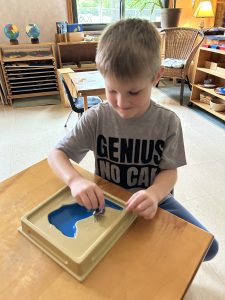 We began the week with the Kindergarten field trip to Wintergarden Park. This is a wonderful time exploring prairie and wooded trails and looking for tadpoles in the wetlands! Thank you to all our drivers. We also introduced one of our final culmination practical life lessons, making cinnamon bread! This work integrates many of the practical life skills we have worked on all year, including measuring, transferring solids and liquids, pouring, stirring, and scooping, kneading, and following a recipe; in addition, it reinforces the skills of concentration, coordination, confidence, independence and order. In science we began the study of landforms, exploring different shapes, their locations and unique characteristics. Shaving cream on a table was explored in our practical life area, while river rocks were added to the movement shelf. What a busy, beautiful week!