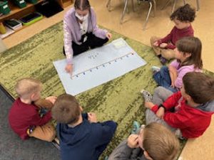 We had a Math Unit lesson on estimation and rounding using our Squaring Chain of 10 for the younger students and the Cubing Chain of 10 for our older students. Students will be rounding numbers to the units, tens, hundreds, and thousands. A phrase that they learn to help remember how to round is, “Five or more, let it soar. Four or less, let it rest.”